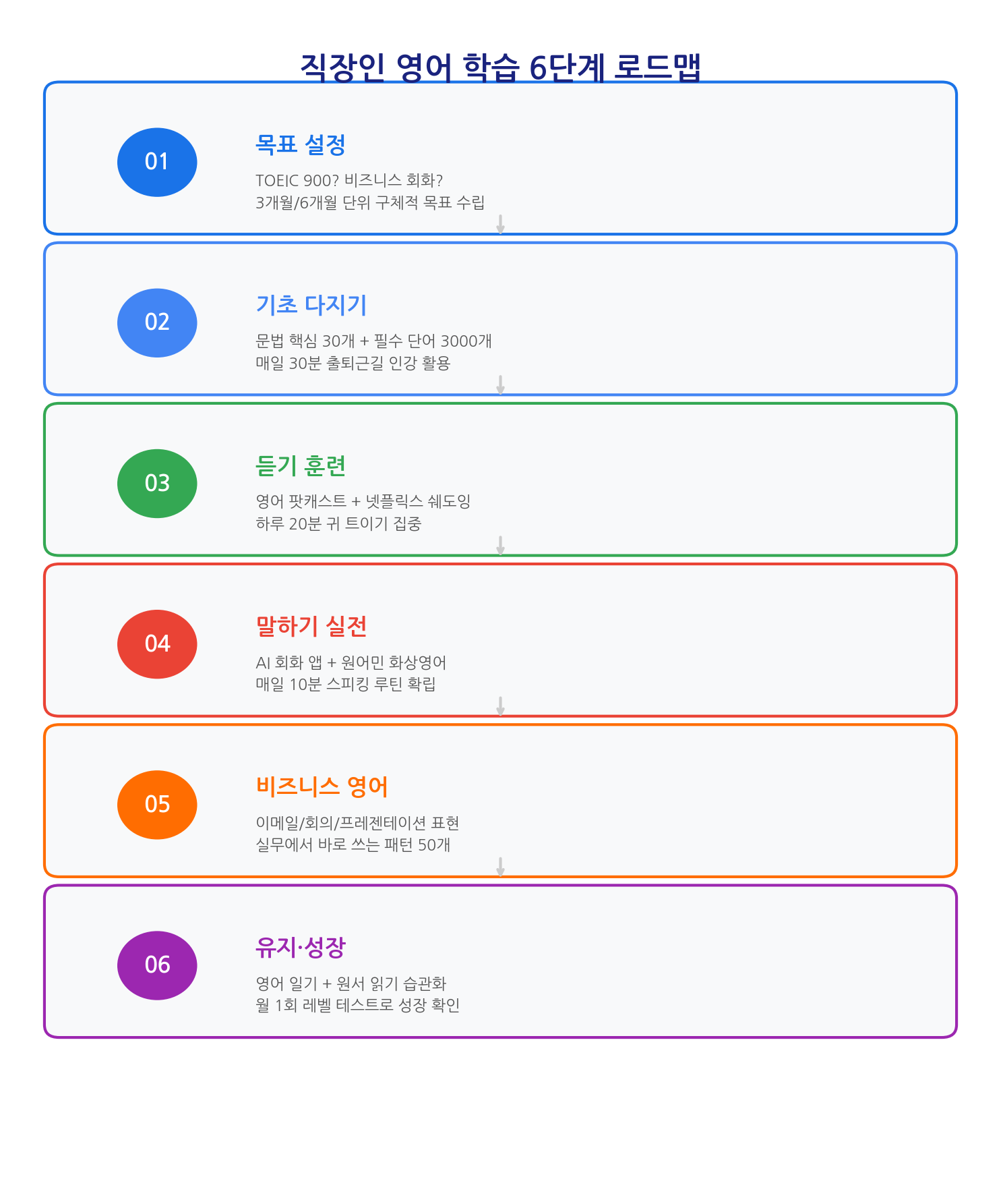 직장인 영어 학습 6단계 로드맵 인포그래픽
