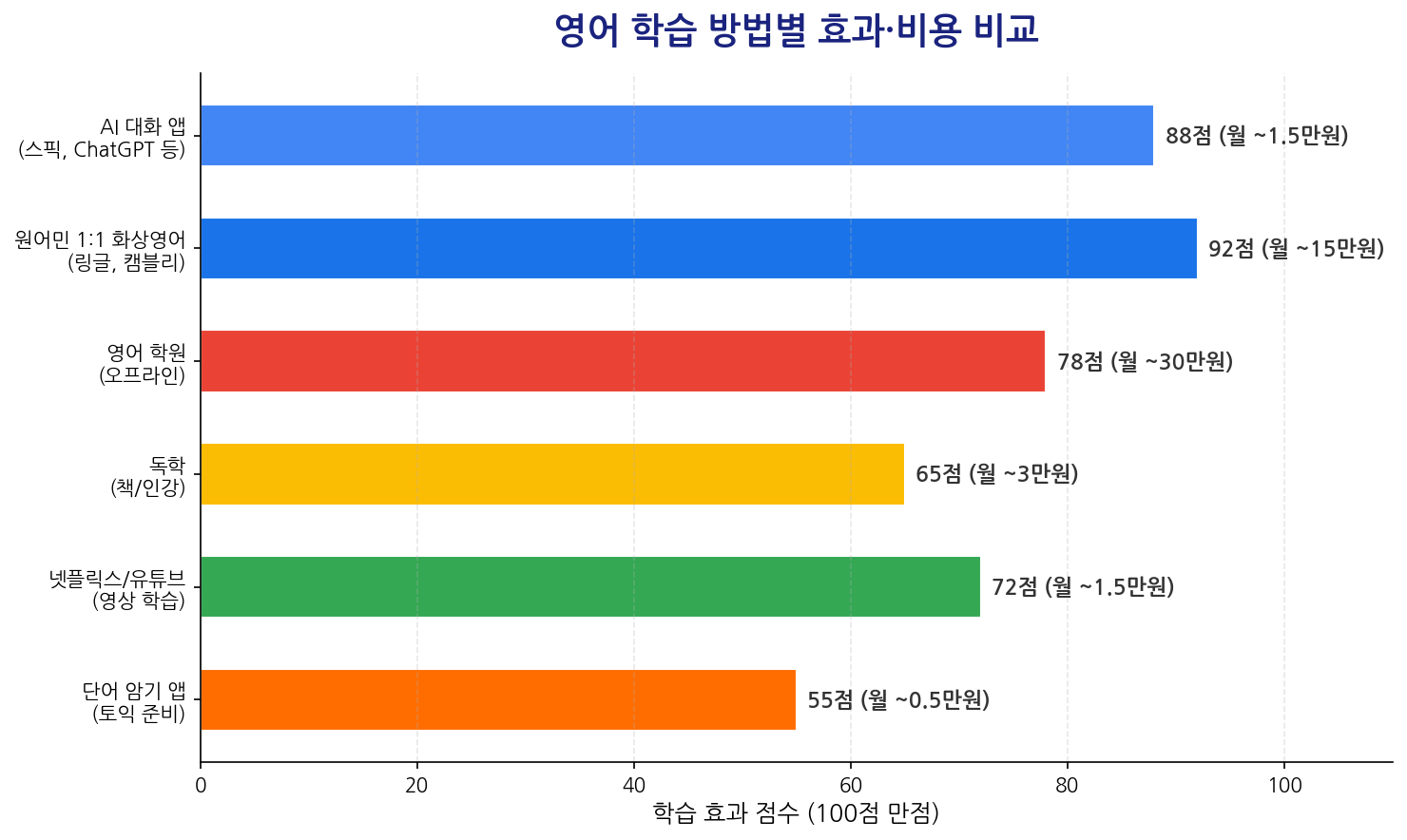 영어 학습 방법별 효과·비용 비교 (2026년 기준)
